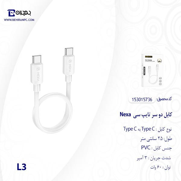 کابل شارژ 60 وات نکسا مدل L3 دو سر تایپ سی به طول 25 سانتی متر