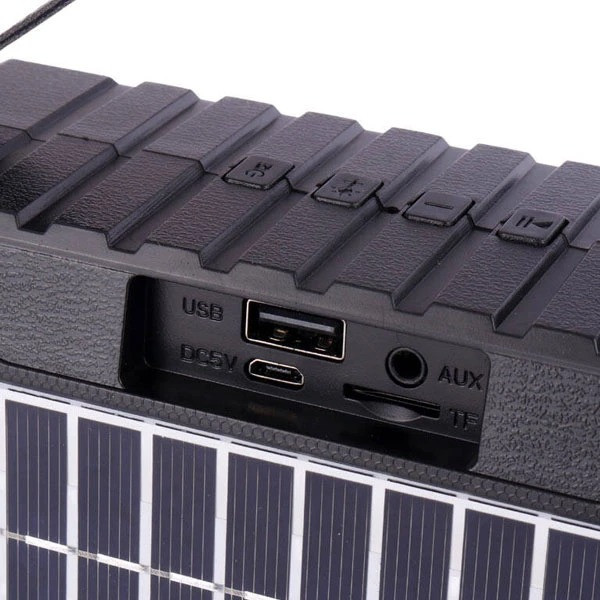 | توضیحات | اسپیکر قابل حمل مناسب کمپینگ , 5 وات , BT5.0 , TF , AUX , USB , قابلیت تماس , رادیو , قابلیت TWS , باتری 1200 میلی آمپر ساعت , با پنل خورشیدی، چراغ قوه |