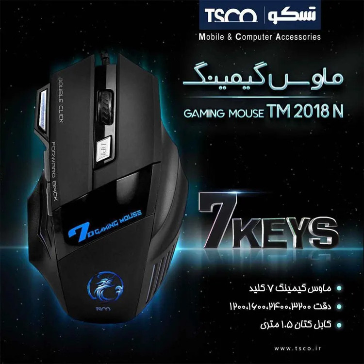 | گارانتی 12 ماهه توسن سیستم (تسکو) اين ماوس به 7 دکمه مجهز شده است و براي اجراي بازيهاي کامپيوتري و کنترل مولتيمديا بسيار مناسب است. با توجه به قابليت تنظيم دقت ماوس تا 3200DPI ميتوان گفت که از اين محصول براي اجراي بازيهاي کامپيوتري ايدهآل است. نوع حسگر اين محصول به صورت نوري و يا اپتيکال است که دقت بسيار بالايي را به ارمغان ميآورد.همچنين ابعاد اين ماوس 39*86*130 ميليمتر و وزن آن 135 گرم است و در هنگام انجام بازي، کاملا در کنترل شماست. |