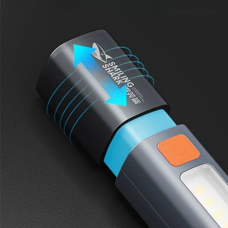 Smiling Shark SD1023 LED Multifunctional Flashlight with Hook Camping Light USB Rechargeable Zoomable