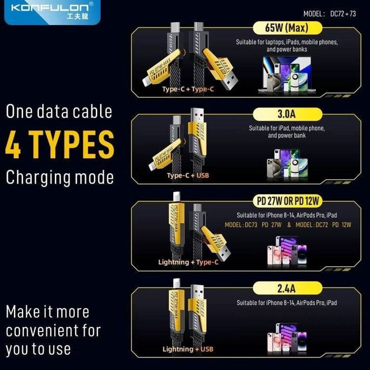 کابل و مبدل Lightning و Type-c برند konfulon مدل DC73